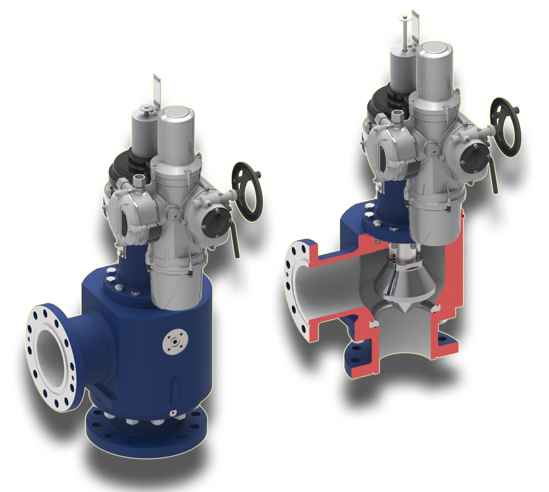 NV type needle valves are used on the bypass lines of main inlet valves (MIVs) to equalize pressures upstream and downstream of the main valve. Opening and closing occur under full water flow and with maximum pressure differential. They can also be used for venting and draining, and even for sudden pressure reduction in a pipeline as a Pressure Relief Valve.