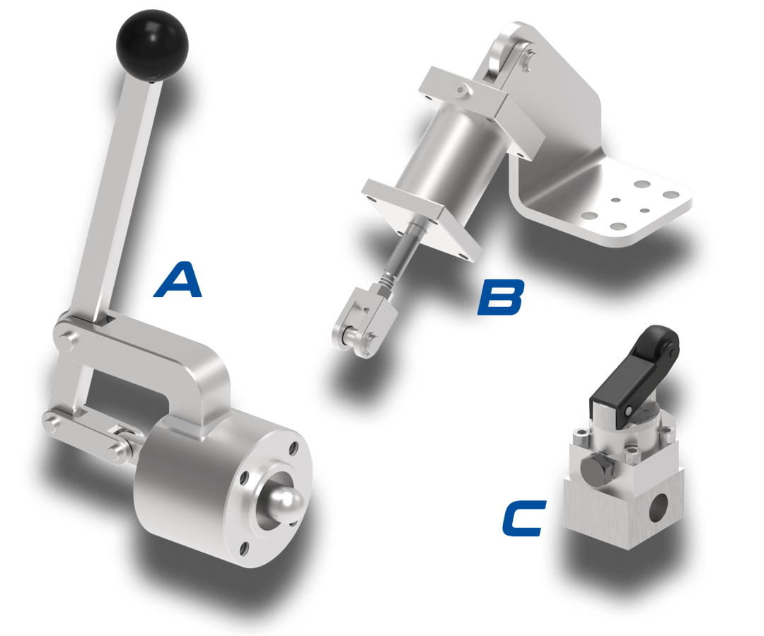 - The deflection of the lever activates a limit switch and an optional hydraulic valve.